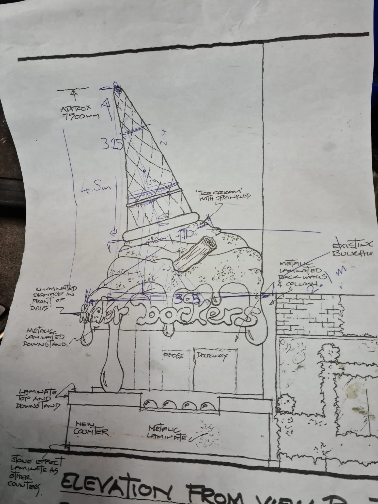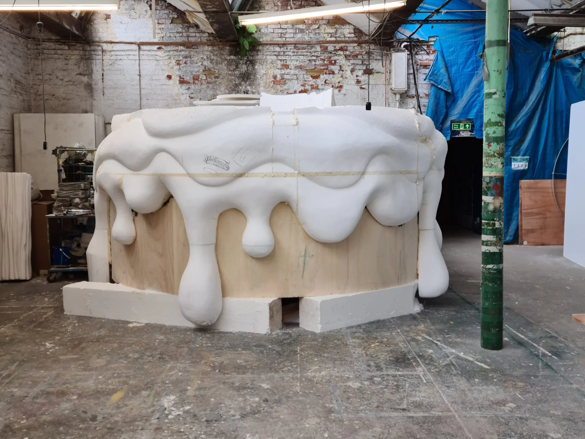 To create a full size prop of an ice cream upside down for their ice cream kiosk.