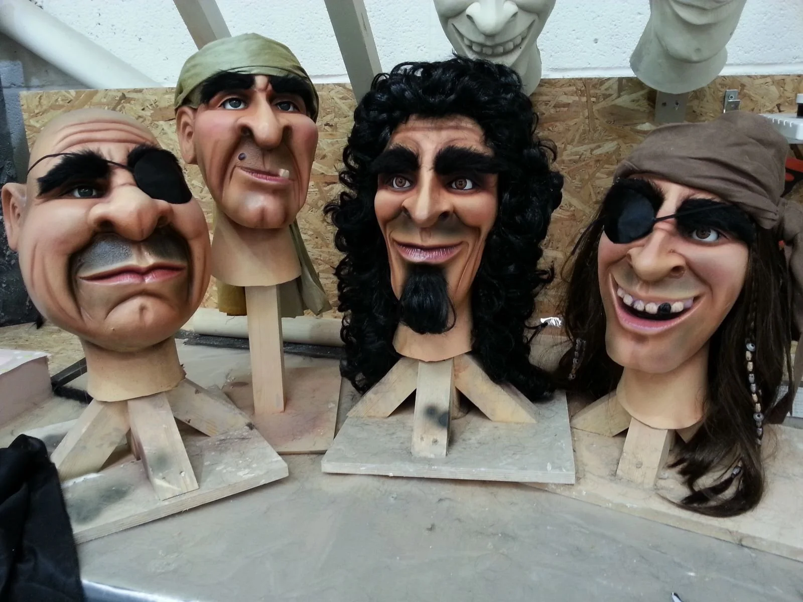 My initial thoughts and designs were very loosely characterized on the Disney pirates. So firstly, I sculpted each one in wet clay and then moulded in light but strong plaster moulds.