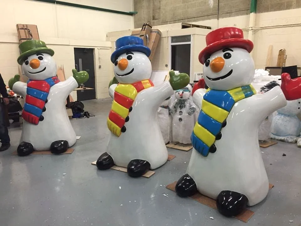 Firstly a smaller moquette was created for the client to approve, then a much larger polystyrene sculpt was created, sealed and then moulded. From this and after much sanding and prepping of the mold, 30 snowmen were produced.
